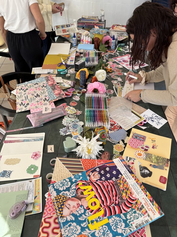 je propose des ateliers courts de journaling / scrapbooking (environ 45 minutes), accessibles à tous, sans prérequis.