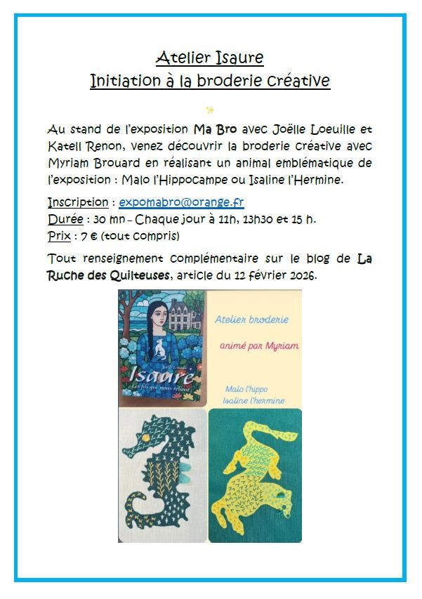 en précisant « Atelier Cartes à Coudre » avec le jour et l’heure choisi.