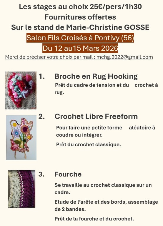 Ateliers Réticello le Jeudi , Vendredi & Samedi r de 14h00 à 16h30.