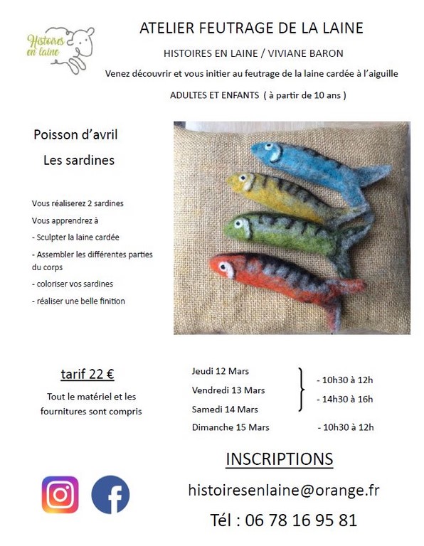 Prix de l'atelier : 30 € (tout le matériel est compris)